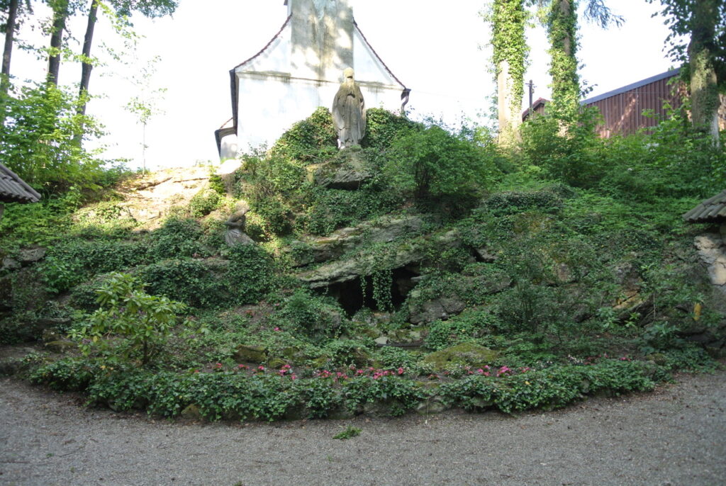 Im Denkmalatlas ist die Lourdesgrotte mit folgendem Text beschrieben: Lourdesgrotte, Felsszenerie mit lebensgroßen Steinfiguren, von Max Heilmaier, 1901; Bethäuschen, links und rechts flankierende Säulenbauten mit Walmdach und Sitzbänken, gleichzeitig. Der Komplex der Lourdesgrotte ist unmittelbar unterhalb der Josefskapelle situiert. Die für diesen Bautyp ungewöhnlich weitläufige Anlage ist um einen zentralen, etwa 10 x 7 m[…]